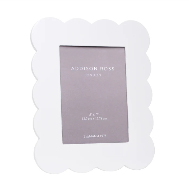 Now Available in Multiple Colorways, our elegant Chiffon Scalloped Photo Frame brings a refined, playful touch to any space. Whether you choose classic white or one of our curated shades, each frame is finished with 20 layers of high-gloss lacquer, hand-polished to perfection for a smooth, radiant surface.