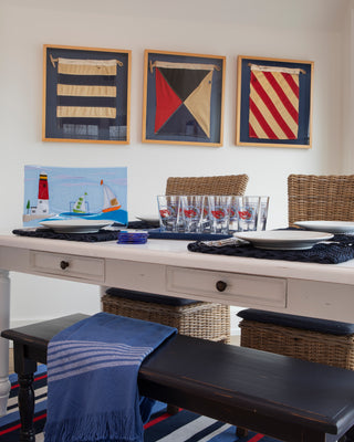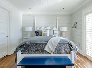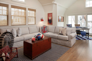 Designed as a heartfelt nod to the family’s beloved former beach house in Loveladies, this guest retreat brings nostalgia and coastal charm together in a fresh, inviting way. Nautical influences guide the palette, blending classic Americana red, white, and blue with sun-washed finishes and crisp, airy textures. The interior remains open and bright, allowing natural light to highlight the thoughtful details reminiscent of summers spent on Long Beach Island. Balanced with modern comfort and livability, the space feels both memorable and new, a welcoming haven for guests that honors the past while embracing the ease of contemporary coastal living.
