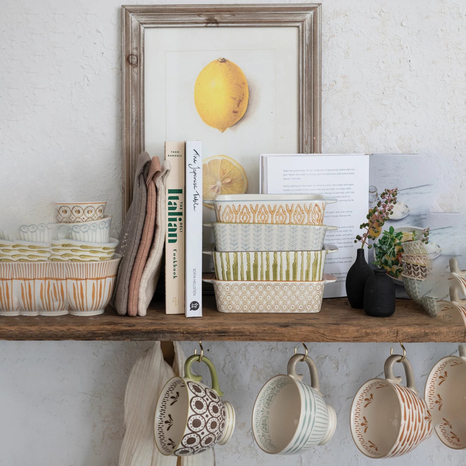 Bake and serve in style with this beautifully Hand-Stamped Stoneware Baker, featuring a unique pattern and artisanal charm. Crafted from durable stoneware, each baker is hand-stamped with an intricate design, creating subtle variations that make every piece one of a kind.