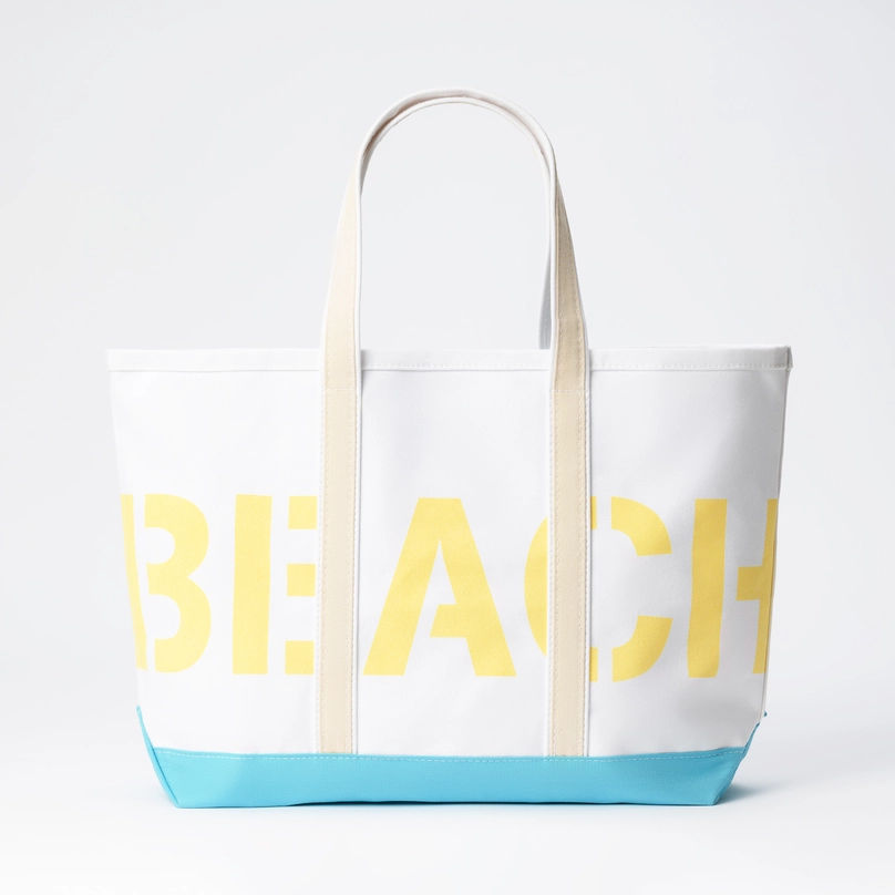 This fun tote is perfect for all your swimming and sunbathing needs! It will carry you away to places like the pool, the beach or anywhere. It's adorned with BEACH on one side and POOL on the other.