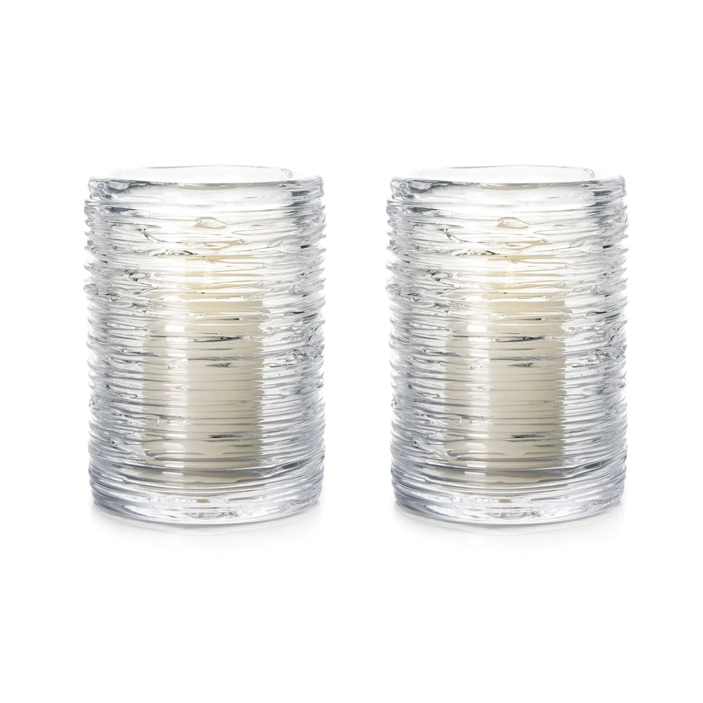 In a bold interpretation of the craft, master glassblowers nimbly wrap fine strands of glass around a cylindrical base to form the unique, natural silhouette of each candle holder. Whether frozen in winter, or flowing in summer - this piece was inspired by the constantly changing rivers, streams and waterways in Vermont. Sold as a set of two.