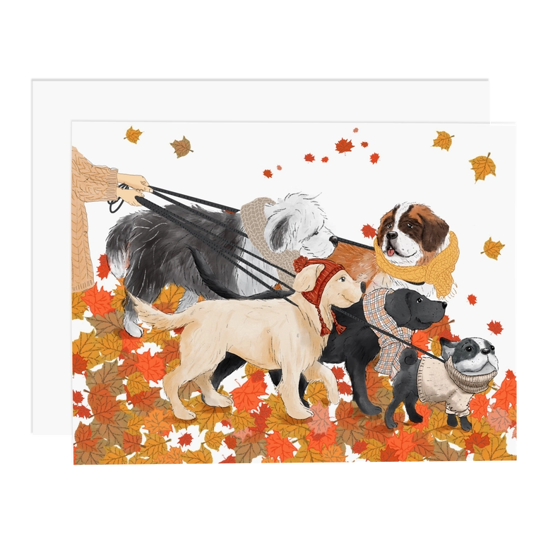 Capture the cozy charm of autumn with Fall Dog Walk, featuring a playful pop art design of a dog enjoying a crisp fall stroll. Perfect for dog lovers, seasonal greetings, or sending a cheerful note, this card brings warmth and whimsy to any occasion. Printed on crisp, bright white cover paper, the inside is blank for your personal message.