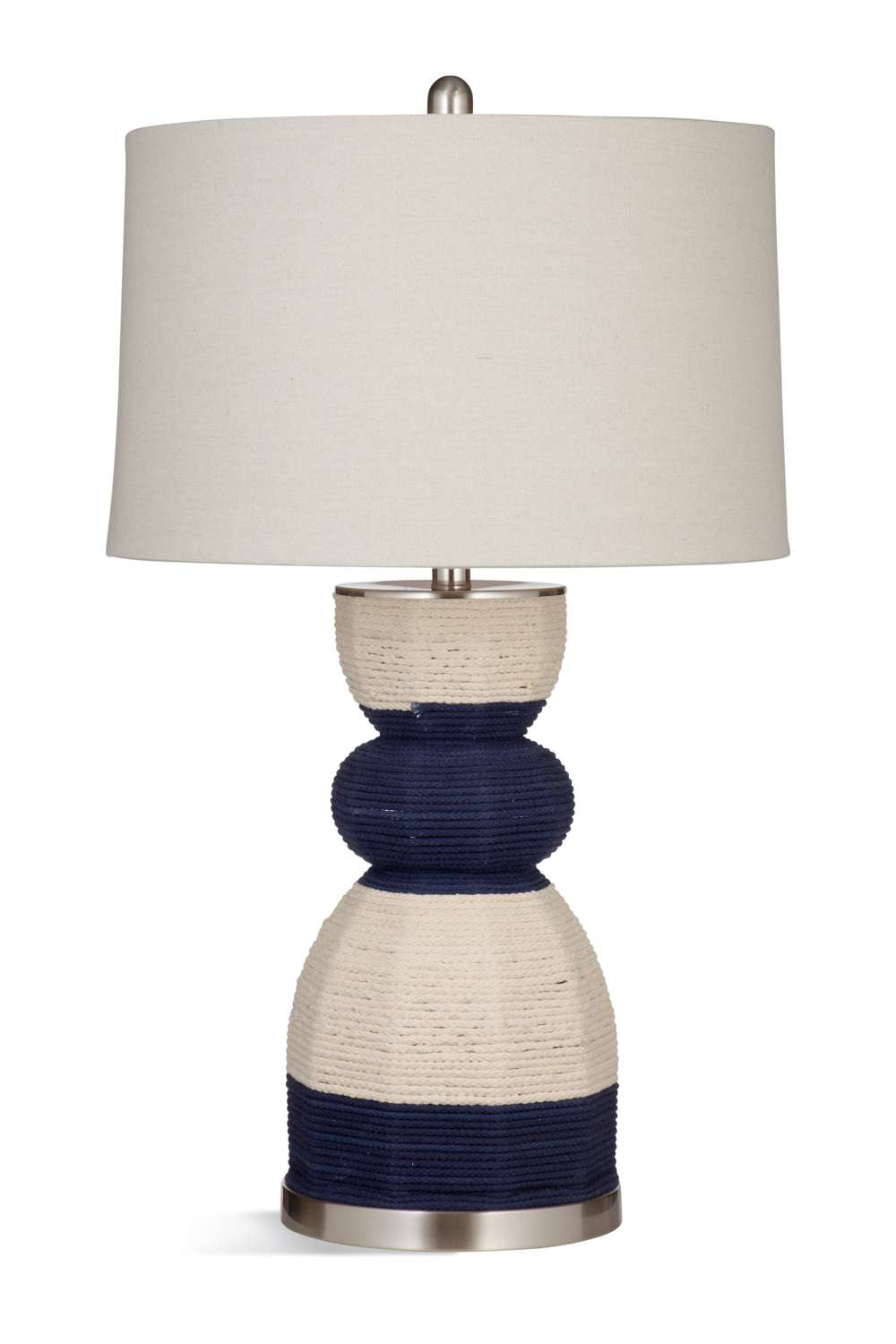 The Kareen Table Lamp is crafted from natural rope for a textured, coastal look. Finished with a simple drum shade, it adds warm, relaxed style to any room.