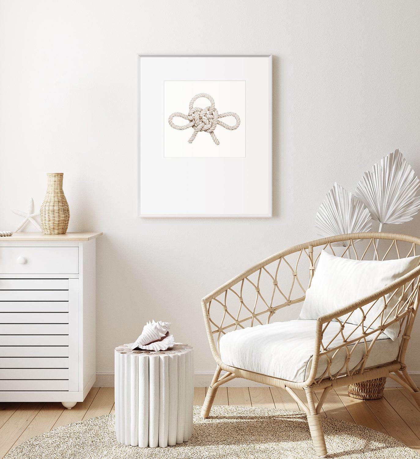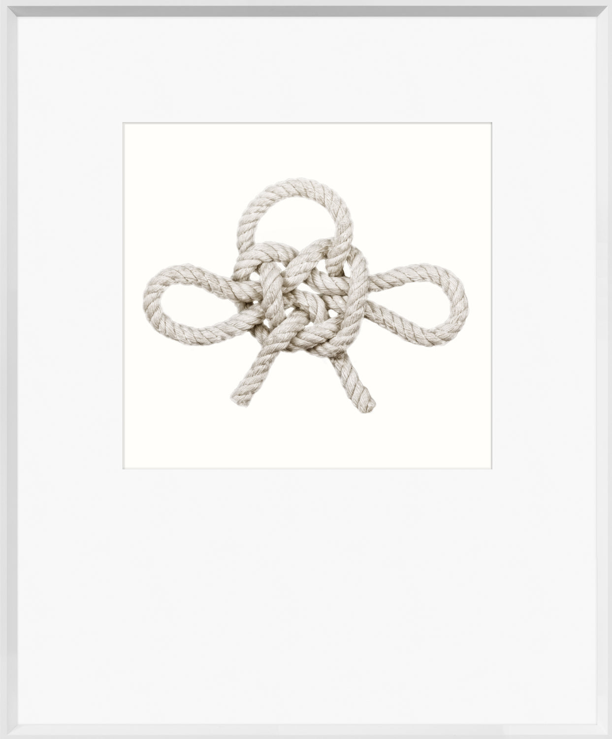 Knot by Celadon Studio transforms a classic maritime symbol into a refined contemporary statement. This detailed photographic study of a traditional sailor’s knot is beautifully presented with an oversized, raised matte and a clean white angled frame, enhancing its depth and simplicity.