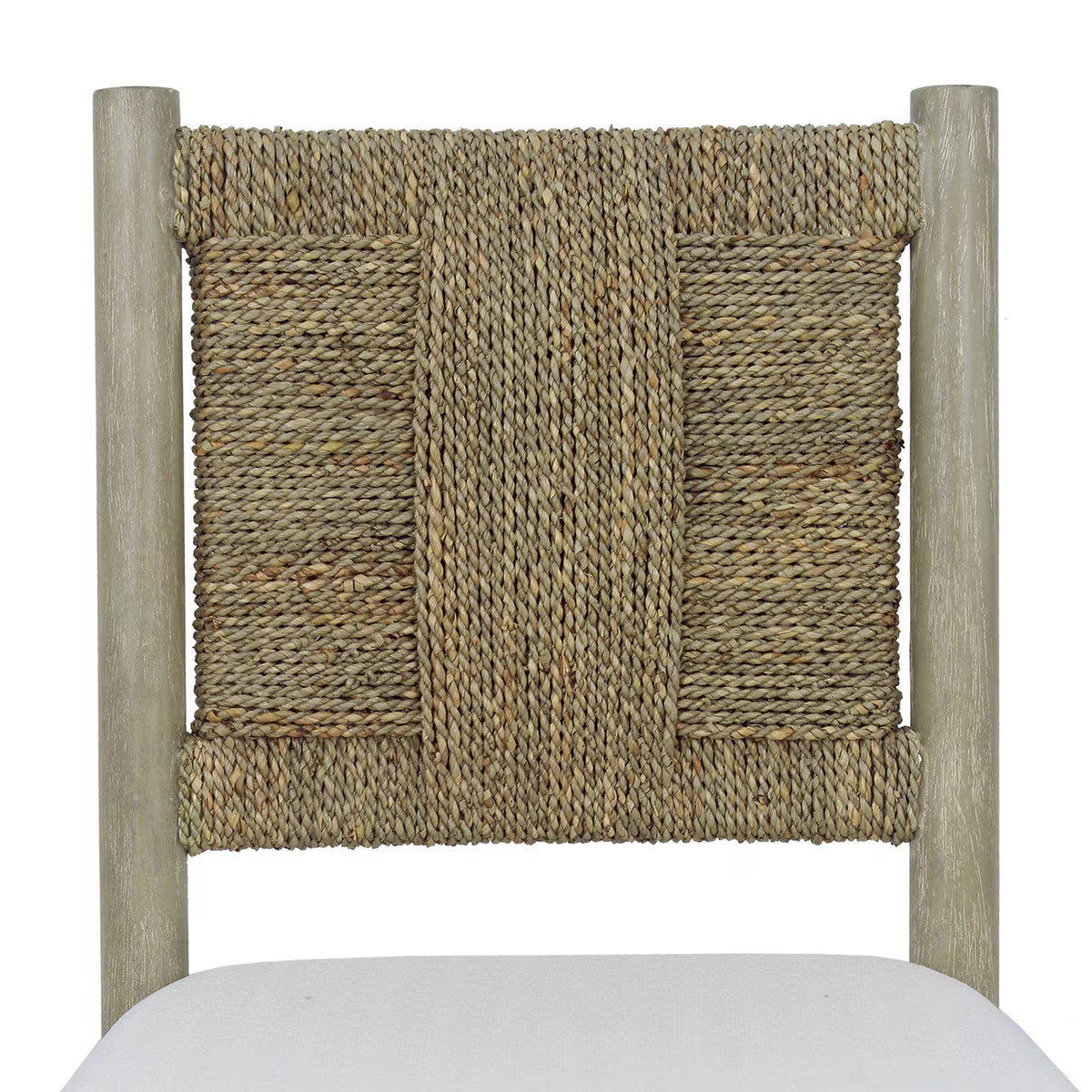 Bring coastal elegance to your dining space with the set of 2 Kauai Woven Seagrass Dining Chairs, meticulously crafted and designed to complement transitional, traditional, and relaxed décors. Featuring handwoven seagrass, the woven back adds rich texture and natural beauty to both the front and back, making it perfect for open dining arrangements. The solid, kiln-dried mahogany wood frame is paired with rounded legs for a subtle, sophisticated detail that enhances the overall design. Sustainably sourced seagrass emphasizes the chair’s eco-friendly craftsmanship, blending style with environmental responsibility. Finished in your choice of a natural wood or a sleek black wood finish, these chairs provide versatile pairing options for any dining table. A white fabric cushion completes the look, ensuring lasting comfort for gatherings that linger. Complete your space with other pieces from the Kauai collection.