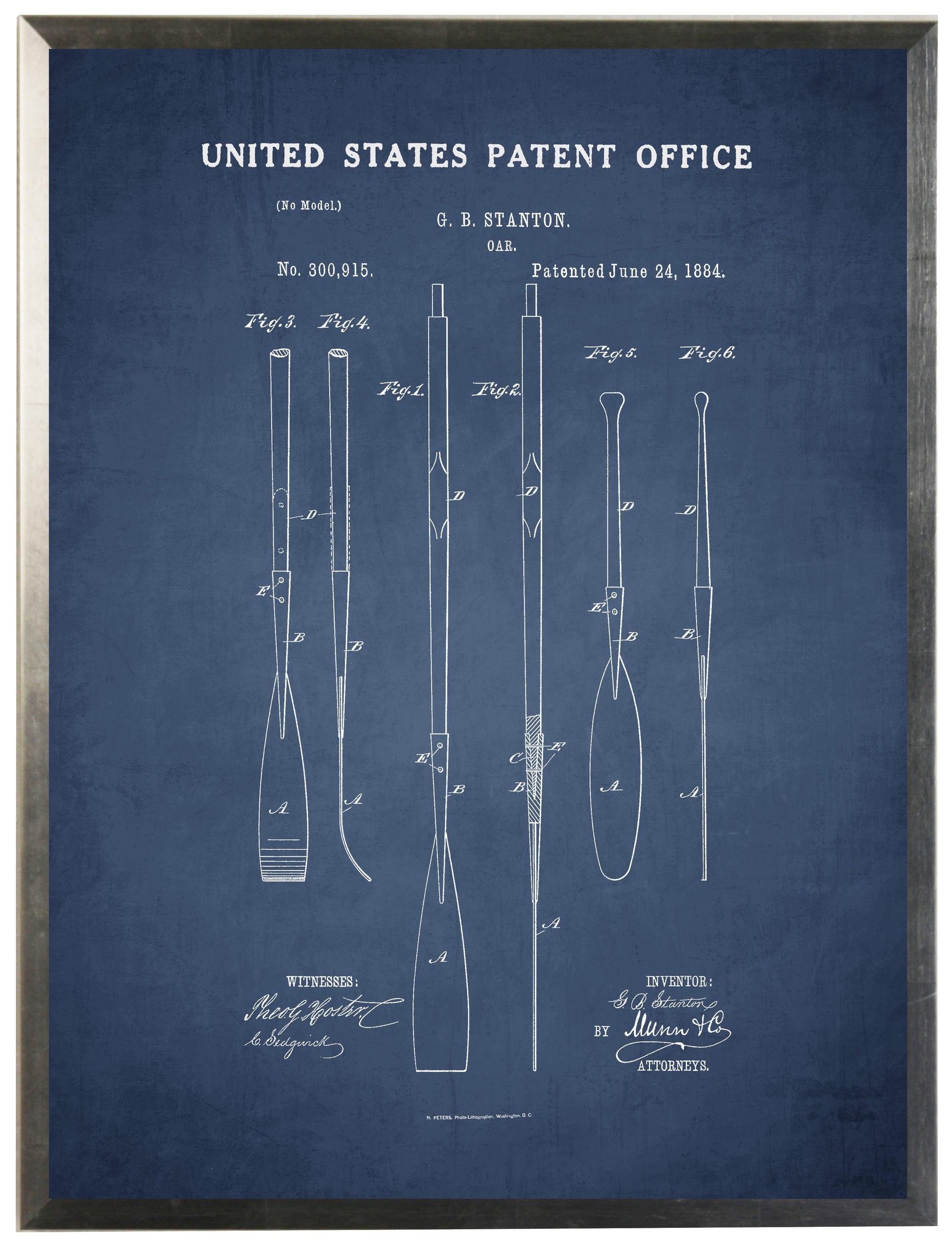 Add a nautical touch with the Oars Patent on Navy Background wall art. This striking piece features detailed patent-style illustrations of classic oars set against a rich navy backdrop, blending maritime history with contemporary coastal décor. Its bold contrast and intricate line work make it a standout accent for living rooms, entryways, or any nautical-inspired space.