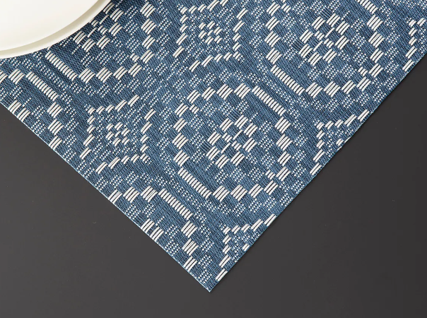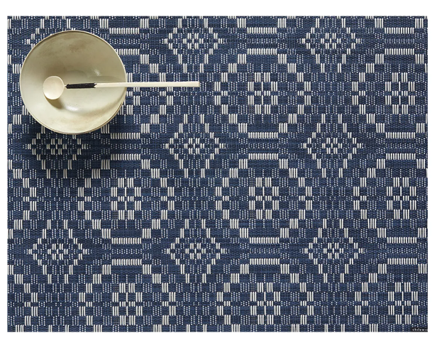With lively yet refined rows of interlocking concentric circles, Overshot is a contemporary interpretation of traditional textiles. It is named for a weave structure with a long history and a distinctive construction: as the weft yarn jumps or "shoots" over the foundational plain weave of the warp yarns, a decorative pattern layer is created. This design takes inspiration from vintage American coverlets. Used as the topmost covering on a bed and distinct from quilts, these woven textiles were especially popular during the early to midnineteenth century. The earliest examples were made with an overshot weave, and this craft continues today.