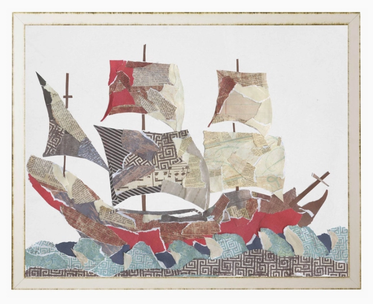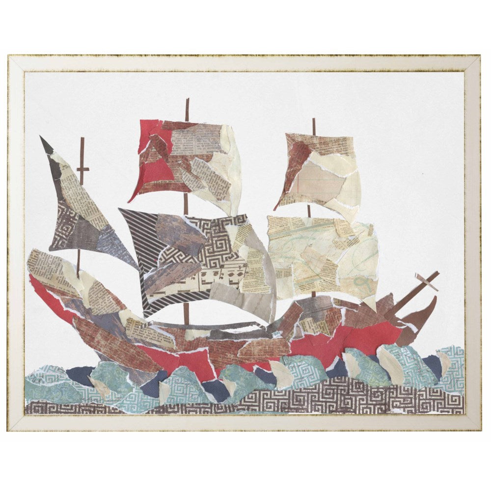 Pirate Ship A - 84021 C (White Washed Distressed Shadowbox) - Online Only