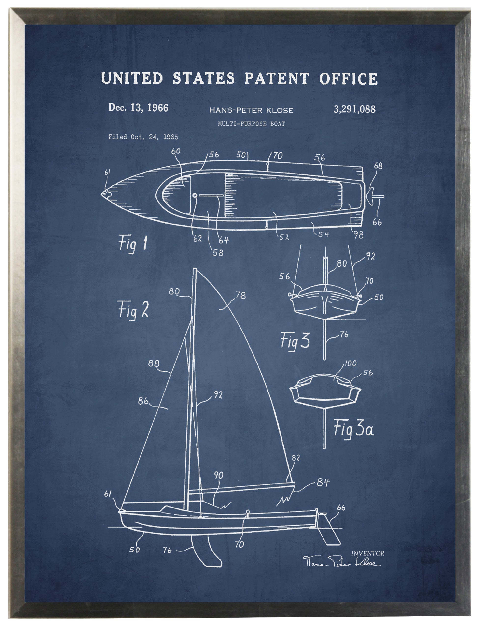 Celebrate nautical heritage with Sailboat Patent on Navy Background wall art. This elegant piece features detailed patent-style illustrations of a classic sailboat set against a rich navy backdrop, blending maritime history with contemporary coastal décor. Its intricate line work and striking contrast make it a standout addition to living rooms, offices, or any nautical-inspired space.