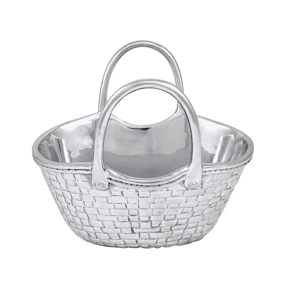 Add rustic charm to your spread with the Woven Basket Nut Dish. Crafted to resemble a classic woven basket, this dish is perfect for serving nuts, small bites, or candies. Add faux flowers to double as a beautiful centerpiece. Handcrafted from 100% recycled aluminum.